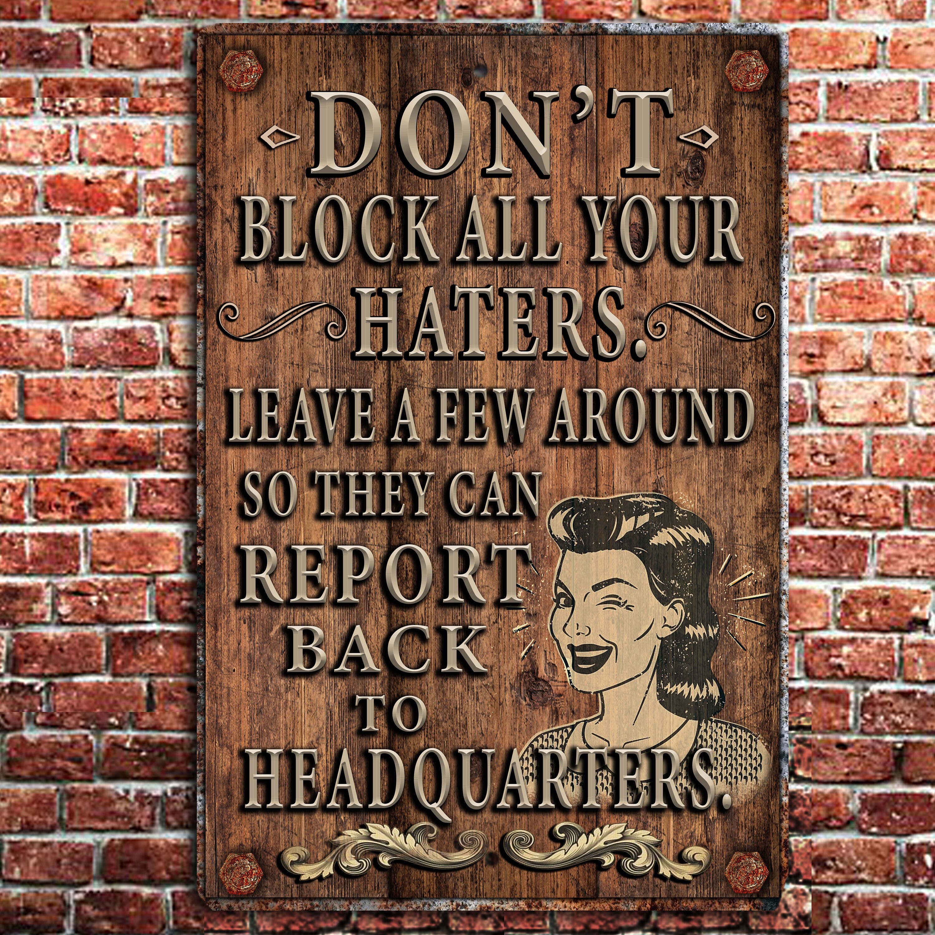 Funny Metal Sign Quote: Don’t Block All Your Haters. Leave Etsy