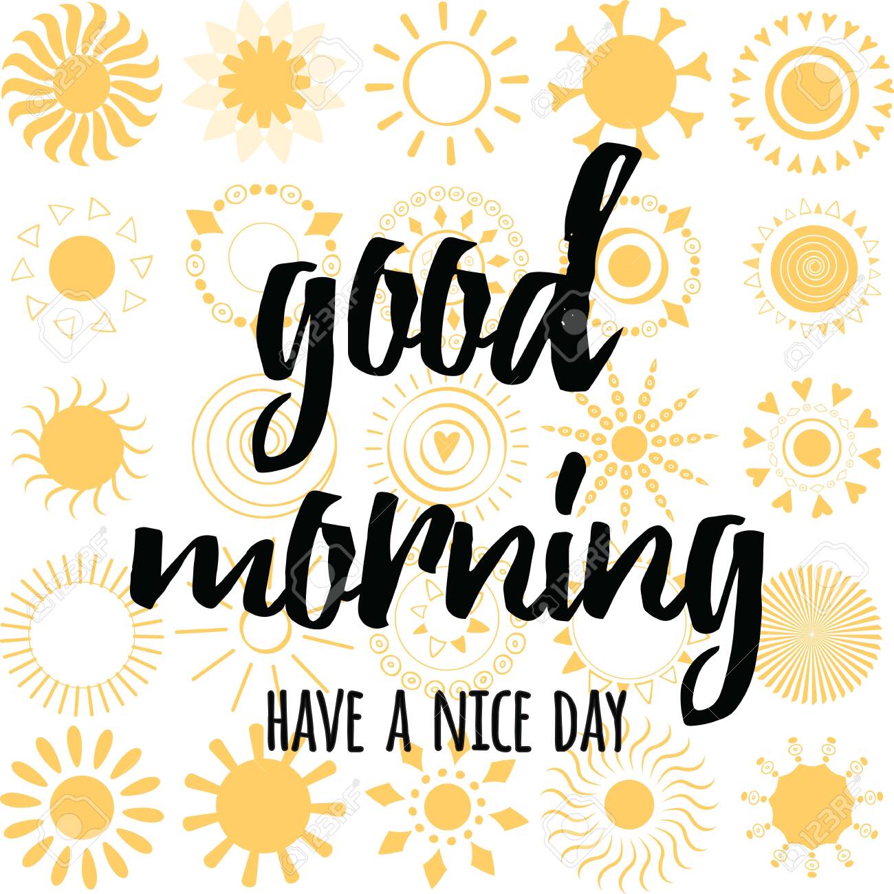 Good Morning Calligraphic Inscription On The Yellow Sun Icons