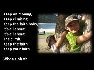 THE CLIMB KEEP ON MOVING KEEP CLIMBING KEEP FAITH BABY. IT’S ALL